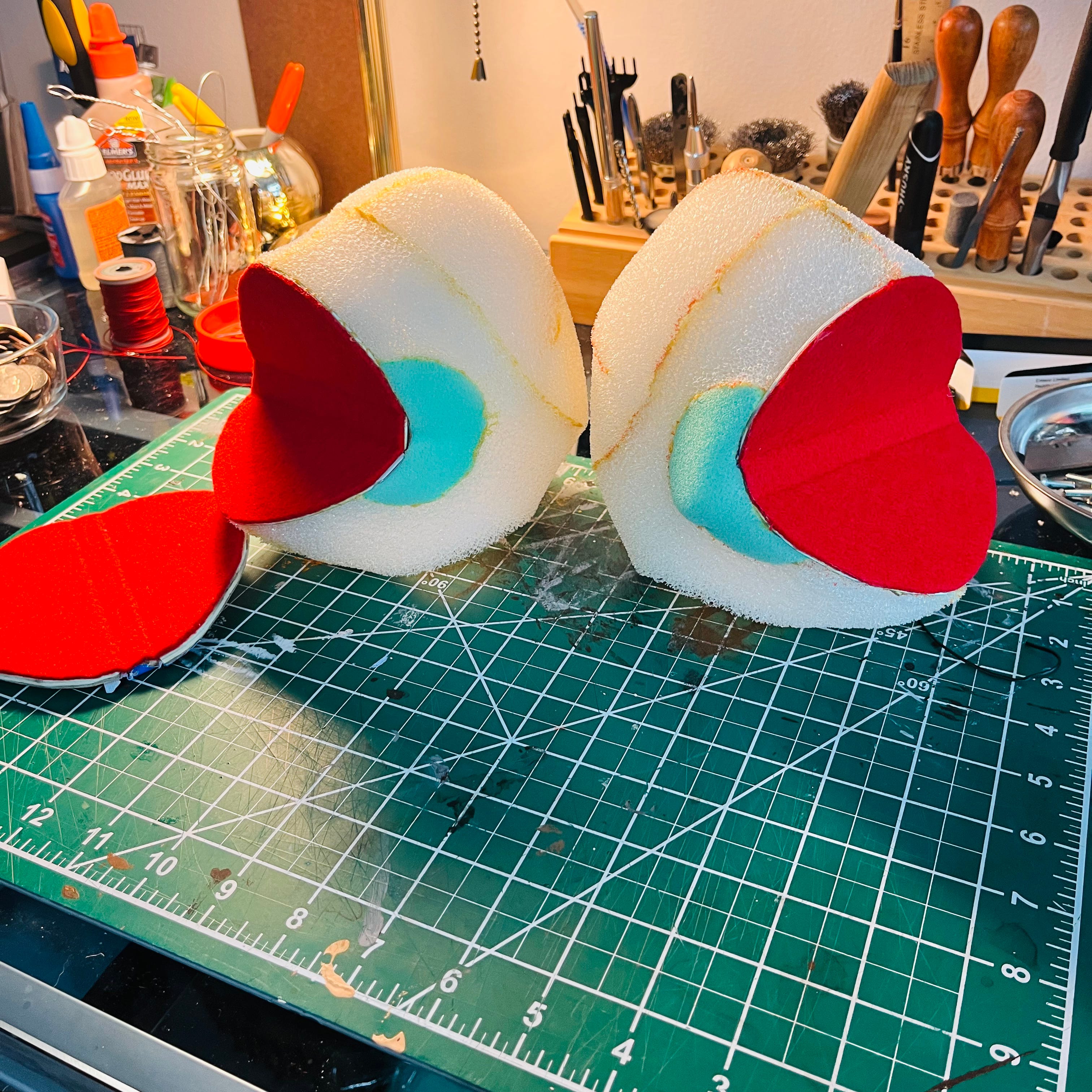 This past week, I reconstructed the mouth plates for the puppet, made two foam heads, and glued them all together. At this point, all the foam work is complete. Next, I will make a sleeve that goes inside the foam body and will be attached to the head. This will be where my arm goes. I’m not sure why having an internal sleeve is necessary. It could be a way of keeping the heat of your arm from the foam because heat will make the glue come undone. That is the theory I am going with. The sleeve will be made with a spandex material and will require sewing. I’m scared. After that, I will probably be covering the body in fleece. Here is the photo of the heads.