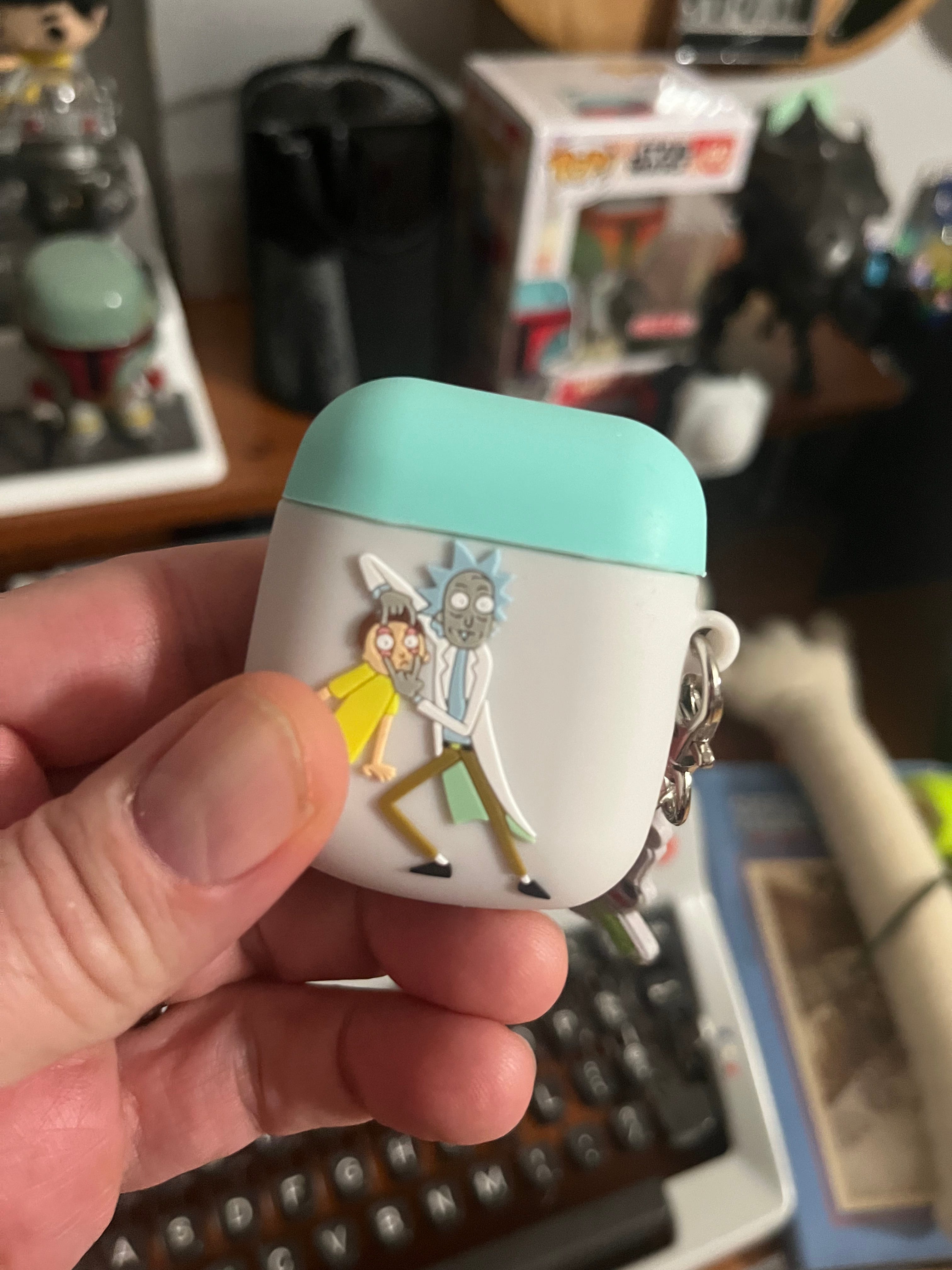 I had a nasty cold this past week that had me down and out in Bucks County. I went out to the thrift stores but didn’t end up with much. I bought a book on writing, Joe Hill’s Horns, which I haven’t read yet, a fun book on demons and monsters, a Rick & Morty case for my AirPods, and some sewing supplies, but nothing exciting.