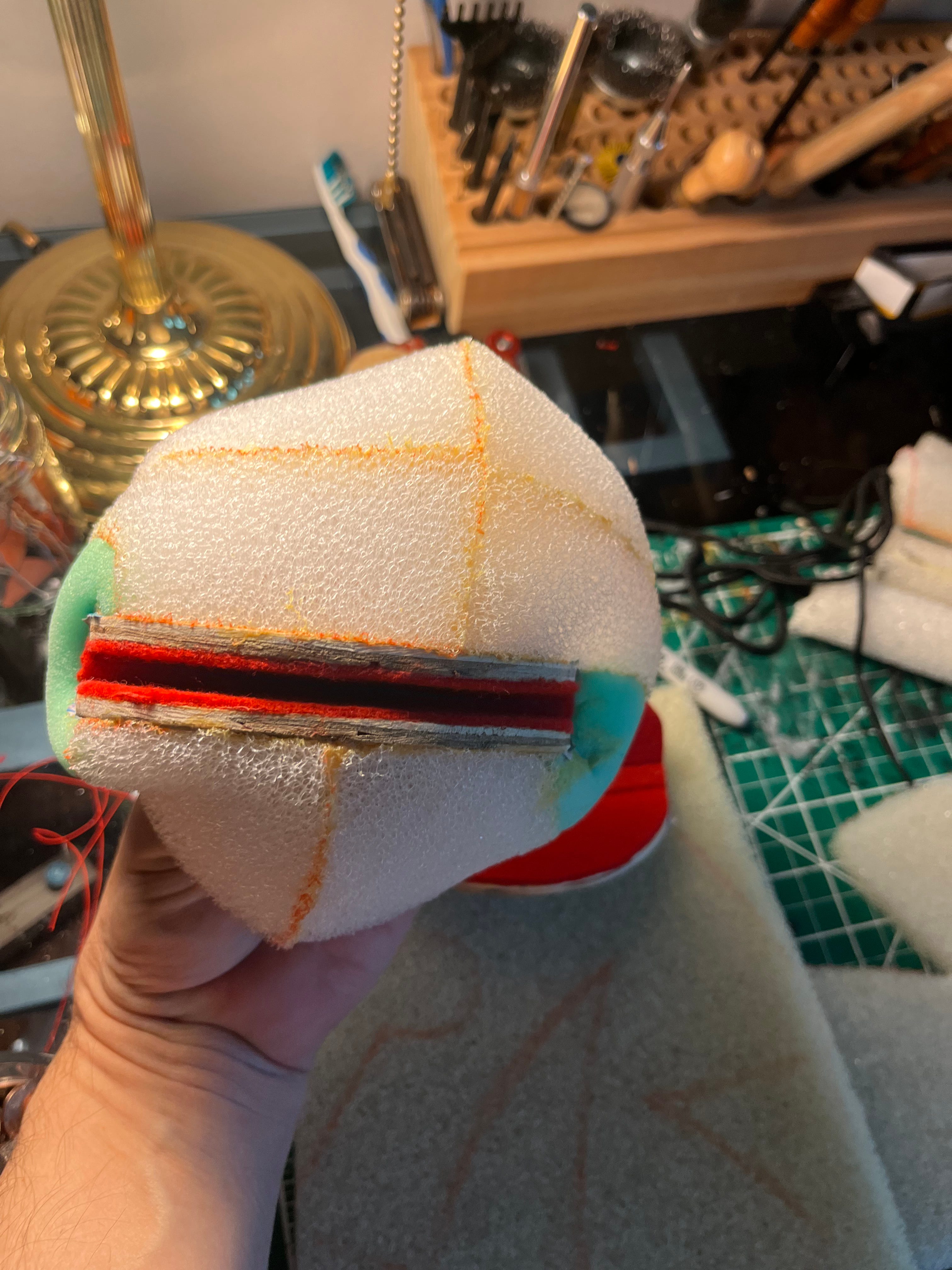 This past week, I completed the head for my puppet build. However, something went wrong. If you have been following this newsletter, you may recall that the first part of the build was the mouth plate. After gluing the mouth plate into the foam head, it didn’t fit correctly, making the face skewed. I could move on and have weirdo puppets—that is my style, but I want them to look as they should before I go weird. It wasn’t intentional to have the face distorted, and although Bob Ross would call it a “happy accident,” I am not happy with this accident. So, I am going to recreate the mouthplates with a thinner material. I believe this will fix the problem. The wood I used for the mouthplates is too thick, distorting the foam head. So next week, I will follow up with my (hopefully) fixed head. Wish me luck.