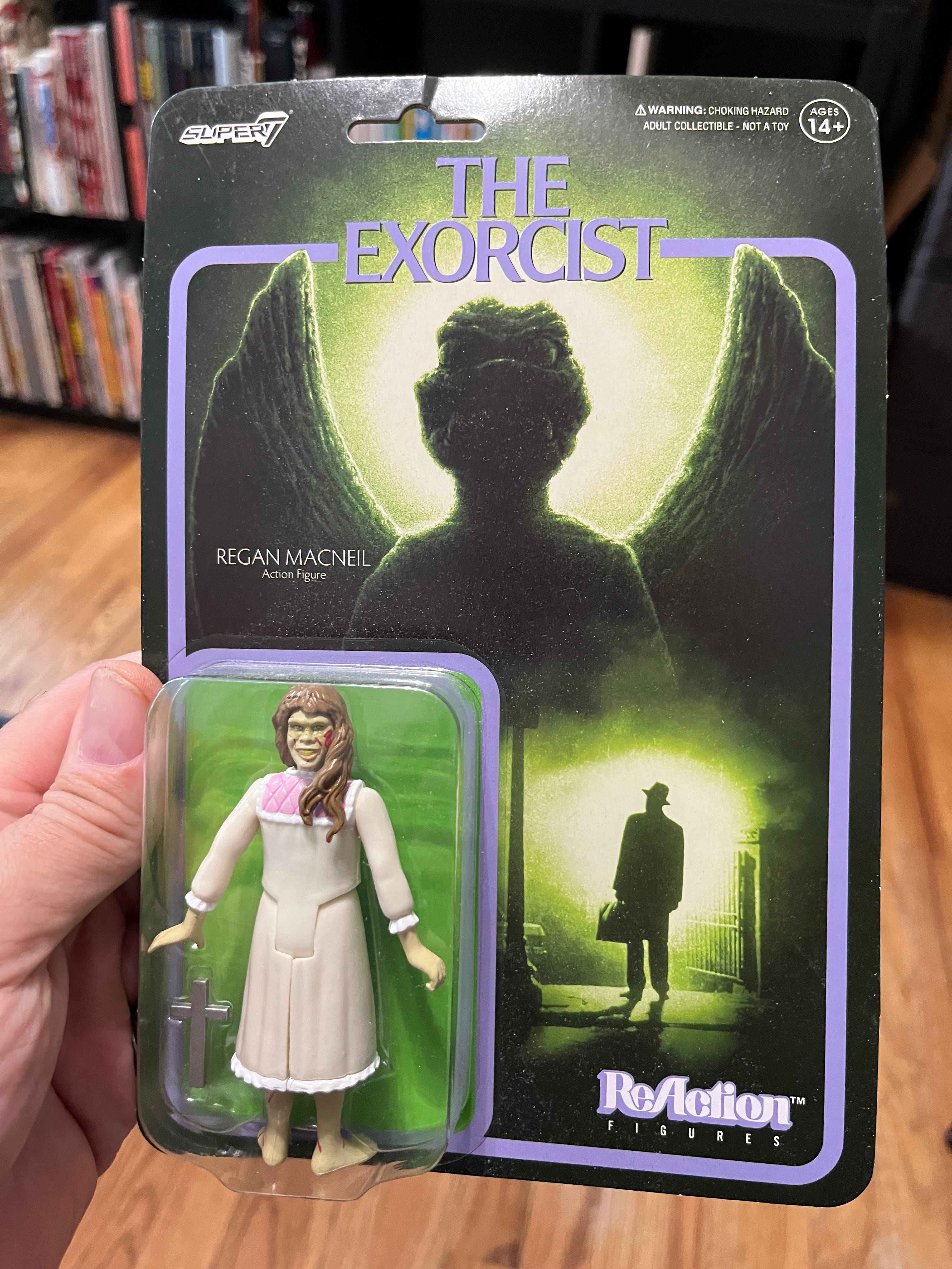 The Regan MacNeil action figure. Notice that the figure is packaged with her body backwards and her head facing forward. Clever.