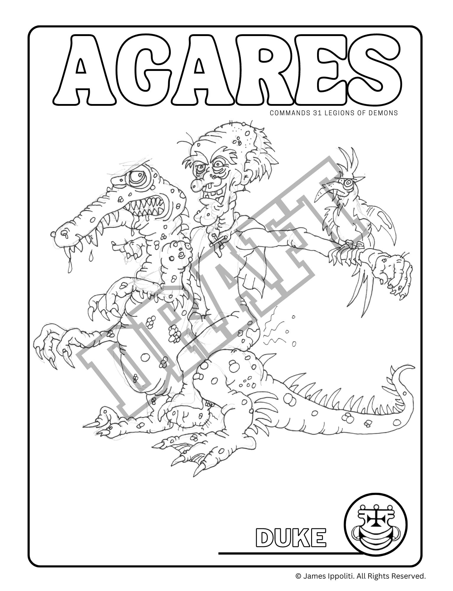 I am working on The Real Demons of Pop Culture coloring book. The Ars Goetia Vol I. It will have 24 demons illustrated by my good friend Chris Blake Sasser. Here is the first illustration of Agares, Duke of Hell.