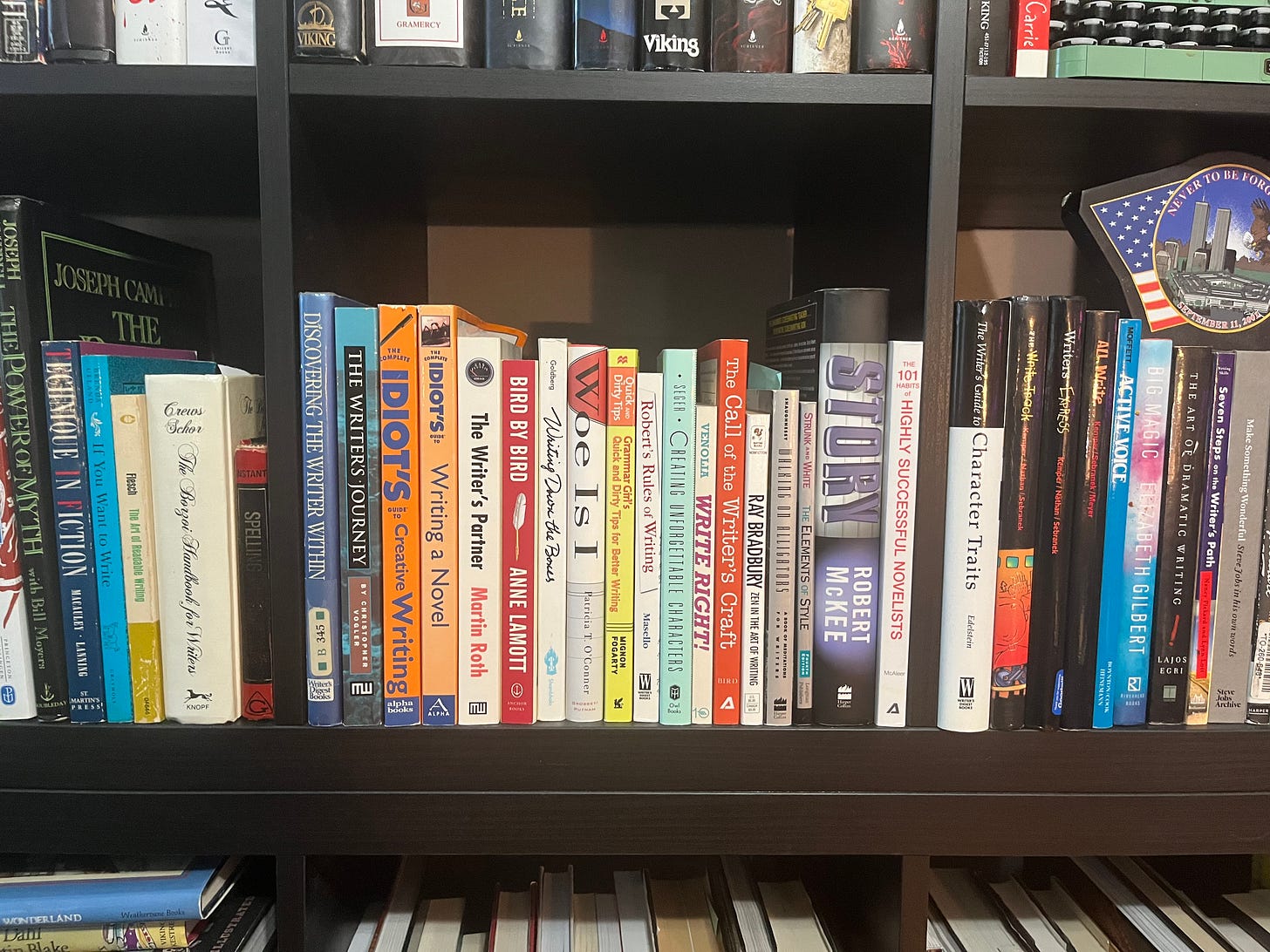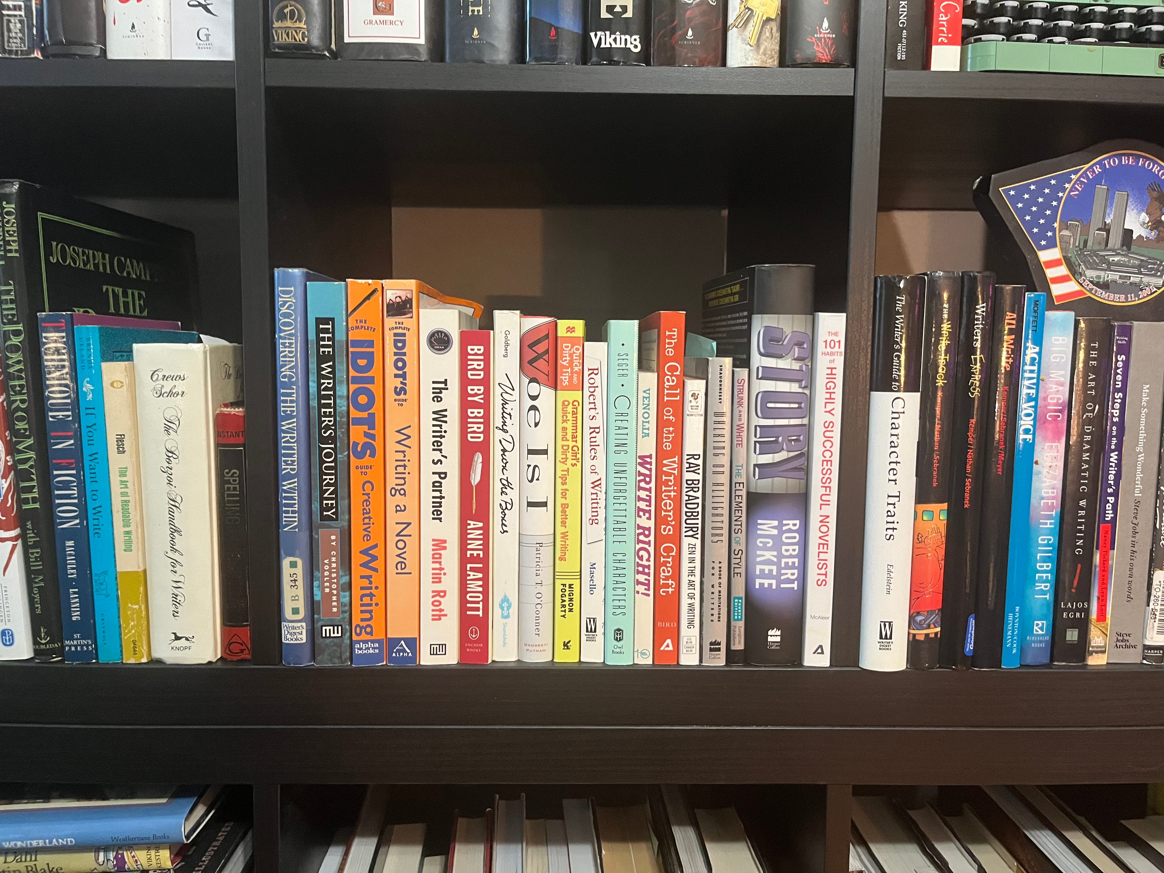My bookshelf is full of writing books, and I always pick up more at thrift shops when I find them. I have been exploring the craft of storytelling all my life, thinking I needed a vehicle to tell my stories: music, film, comics, and so on. But now I know I only want to tell a story. I want to write, and that is good enough. It took me a long time to realize that.