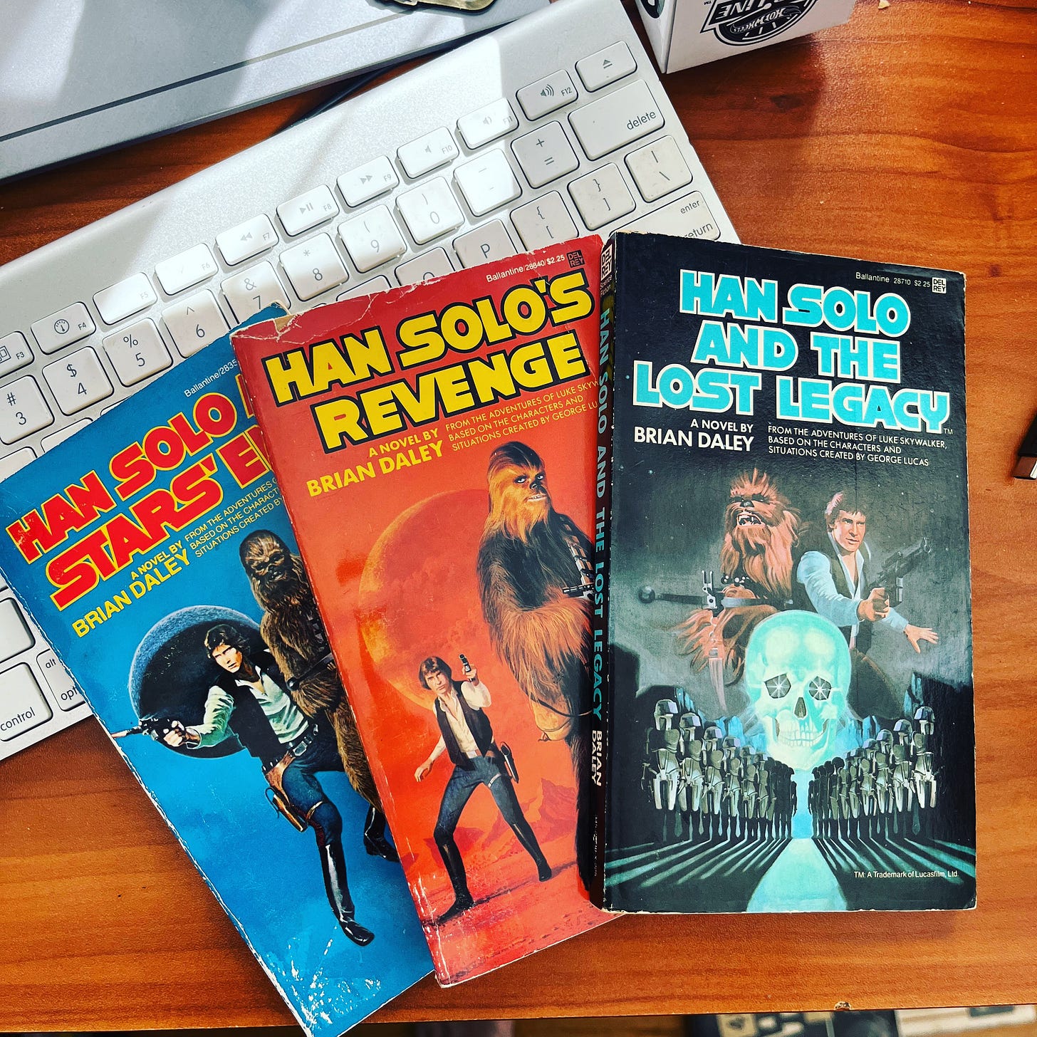So you can imagine my glee when I spotted all three of the Han Solo Adventure paperbacks at the Goodwill. ALL THREE! Han Solo at Stars’ End, Han Solo’s Revenge, and that book fair favorite Han Solo and the Lost Legacy. Do you know how hard it is to find not just one of these original books but all three? It’s not easy. I do not recall the trilogy, so it will be like reading them for the first time. I understand I could find them on eBay. Where’s the fun in that? It’s all about the hunt and paying a dollar per book vs. what those jokers on eBay want. I just finished the first book. Subscribe to my YouTube channel because I will post a video when I finish the trilogy.